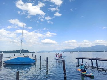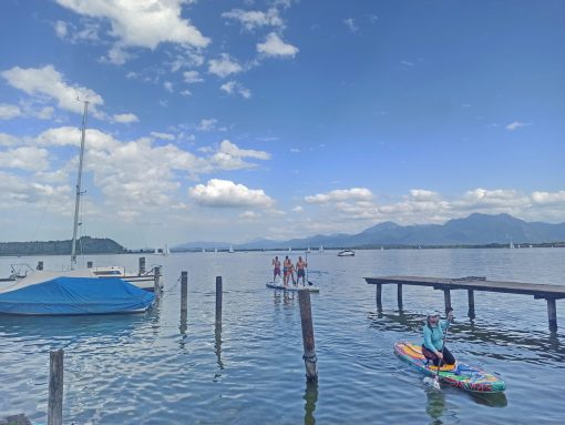 Fast unendlich sind die Freizeit- und Sportmöglichkeiten um, am und auf dem Chiemsee – wie diese aktuellen Bilder vom Pfingstwochenende an der Westküste des “Bayerischen Meeres” in Prien zeigen.