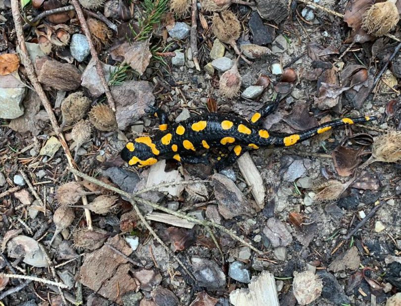 Nicht für Jeden ist jedes Wetter gleich. Ungleich der Menschen freut sich nämlich der Feuersalamander, wenn es mal länger regnet, alsdann lässt er sich auch mal sehen. Aber Vorsicht: nicht anfassen, die kleinen und schönen Tiere können giftig sein. Nachfolgend weitere Informationen von wikipedia: