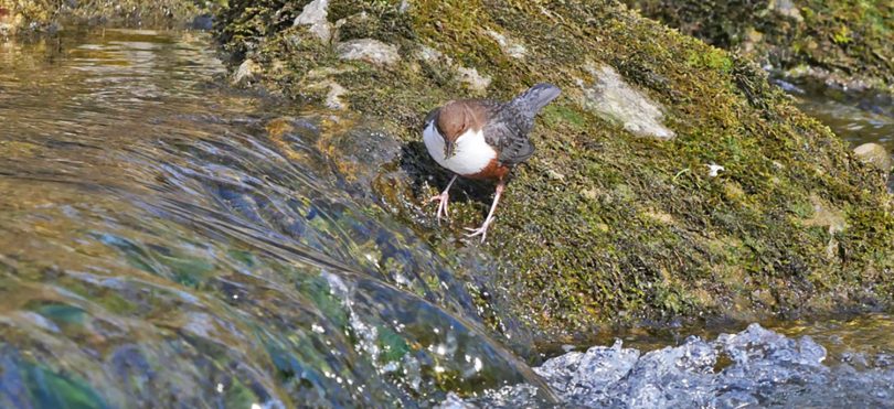 Bei den typischen Gebirgsbachbewohnern wie der Gebirgsstelze beginnt die Paarbildung und entlang der linearen Strukturen suchen die Paare bereits nach geeigneten Nistplätzen. Ein heimlicher Bewohner des Eichentals ist der Eisvogel, der genüsslich seinen Fang genießt. Mit der Wasseramsel bietet das Eichental ein weiteres Highlight. Diese wunderbaren Vögel sind bereits mit der Brut beschäftigt und die fleißige Wasseramsel hat einen kompletten Schnabel voller Larven bereits erfolgreich gefangen.