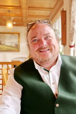 Die Tradition der Chiemsee-Maler und der Künstlerkolonie Chiemsee ist auf der Fraueninsel untrennbar mit dem Hotel-Gasthof „Zur Linde“ verbunden. Das Haus im Besitz des Freistaates Bayern ist zudem eines der ältesten Wirtshäuser in Bayern. Einen Aufschwung erlebte es mit dem Beginn der Chiemsee-Maler-Reisen auf die Insel. Heute wird es von Pächter und Wirt Florian Ebner geführt, mit ihm trafen wir uns zu einem Rück- und Ausblick im schattigen Biergarten nahe der Klostermauern.