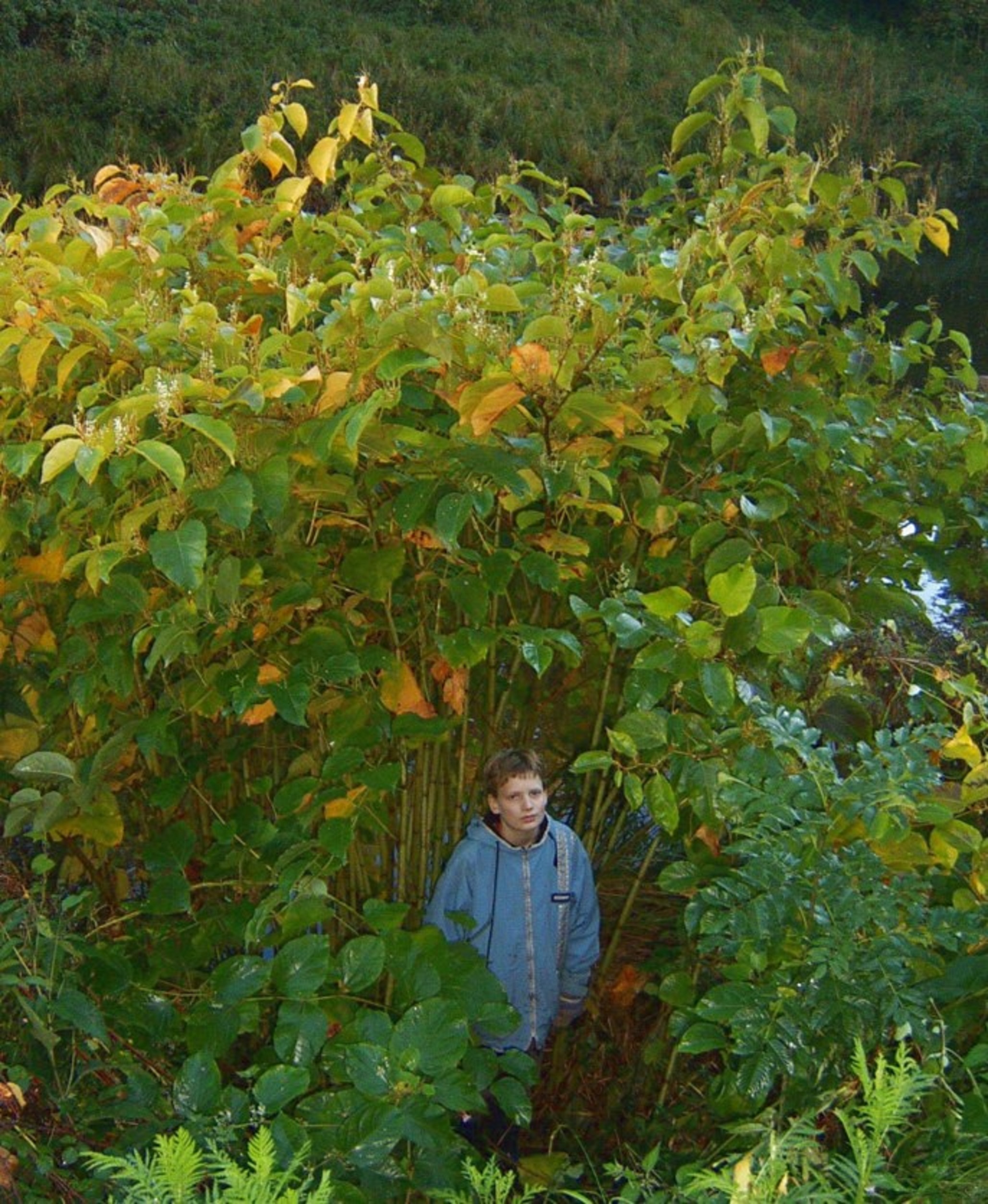 „Da wächst kein Gras mehr“ – der Japanknöterich kann schnell große Bestände ausbilden, wodurch andere Pflanzen keine Chance haben zu wachsen. Bild: Josef Stein