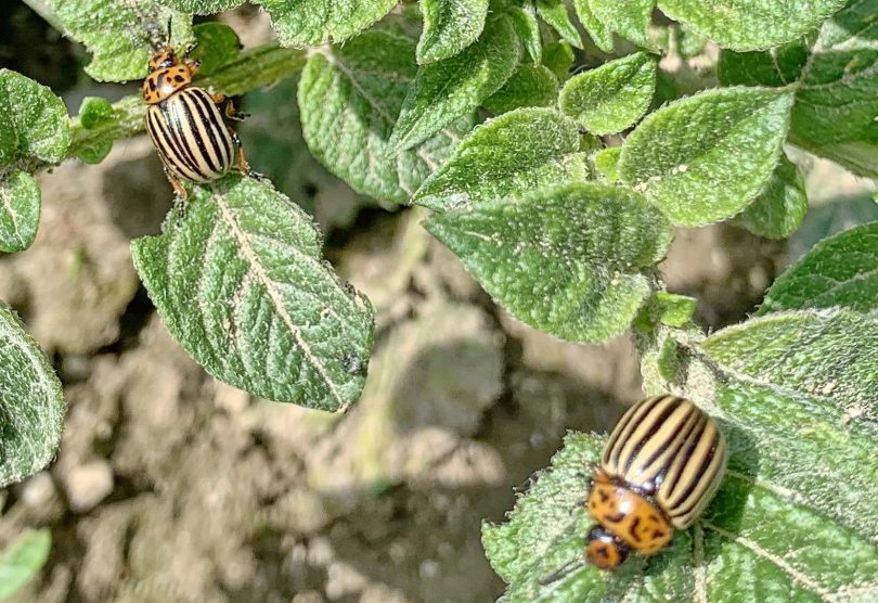 In diesen Sommerzeiten, wenn im Garten die Kartoffelpflanzen zu blühen beginnen, ist es ein Leichtes einen Kartoffelkäfer anzutreffen. Die sieben bis fünfzehn Millimeter langen Kleintiere sind gelb mit schwarzen Flecken am Halsschild und mit zehn dunklen Längsstreifen auf den Flügeldecken. Der Kartoffelkäfer, der ursprünglich von Mexico und Colorado nach Europa kam vermehrt sich rasant, er und seine Larven ernähren sich von Teilen der Kartoffelpflanze und sie können innerhalb kurzer Zeit ganze Felder kahl fressen.
