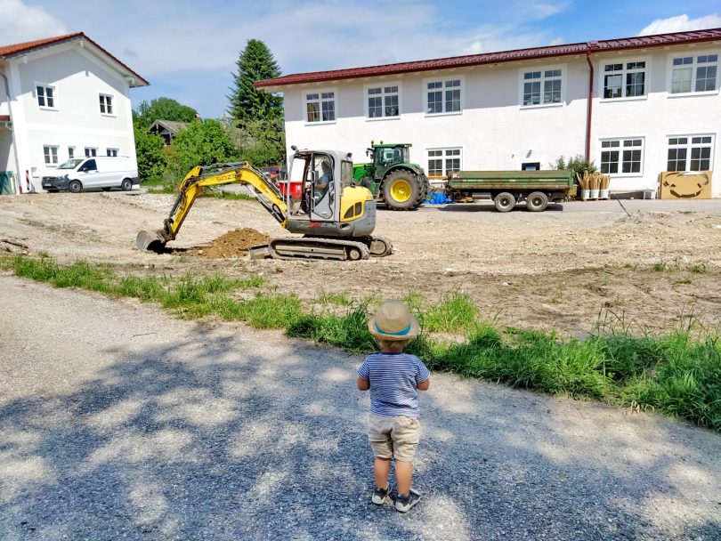 Wenn Neues und Großes entsteht, dann ist das besonders für Kinder eine interessante und spannende Sache – so wie der zweijährige Luggi aus Prien gespannt verfolgt, was da in seiner Nachbarschaft gerade entsteht. Die Baustelle hat erst begonnen, das heißt, dass Luggi noch oft Gelegenheit hat, sich die Bau-Entwicklung anzuschauen.