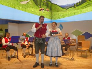Mit der Musik “Milch-Harmonie” begann der Mittwoch auf der Grünen Woche in der Bayernhalle. Weitere Auftritte auf der Bühne und im Biergarten der Bayernhalle kamen von den Trachtenvereinen Atzing (Chiemgau-Alpenverband), Bad Feilnbach (Gauverband I) und Neubeuern (Bayerischer Inngau) als gemeinsame Truppe vom “Trachtensommer 2017” im Landkreis Rosenheim. Dazu traten noch auf der Musikverein Aretsried bei Augsburg und die Anzwies-Musikanten aus Prien-Atzing.