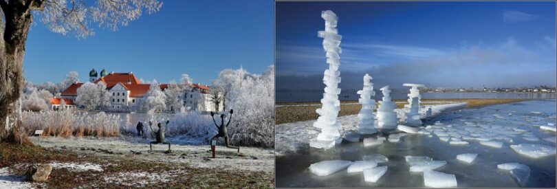 - Eisskulpturen aus Eisschollen am östlichen Chiemseeufer