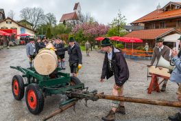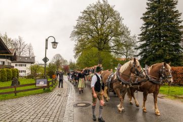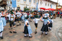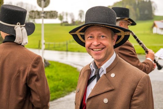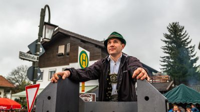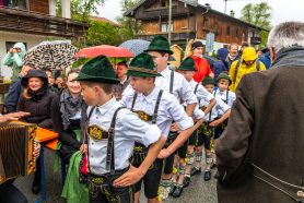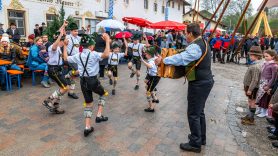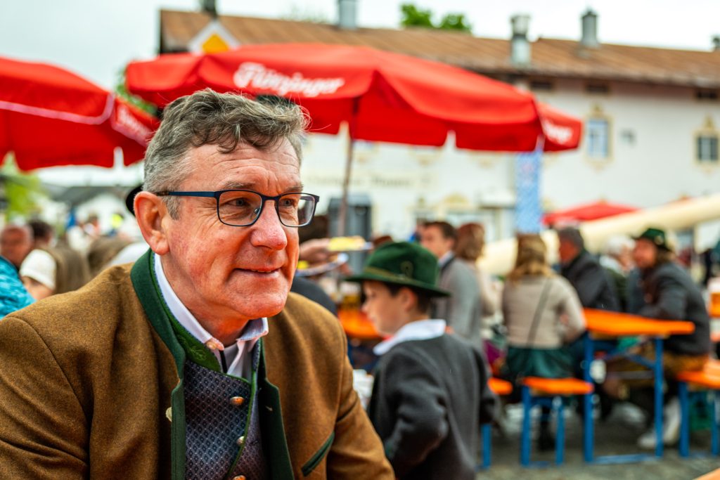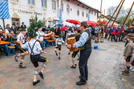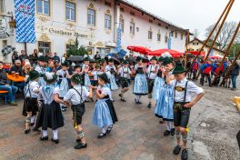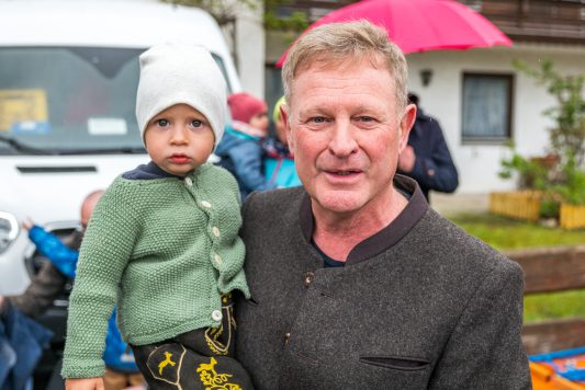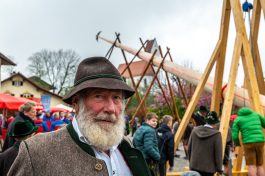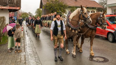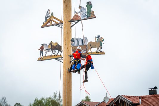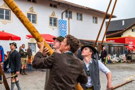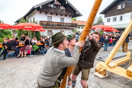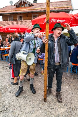 Das Maibaumaufstellen fand unter starker Beteiligung der Samerberger Bevölkerung statt, die sich trotz zeitweisen Regens die Feierlaune nicht nehmen ließ, ganz nach dem Motto: “Wir können auch bei Regen gut feiern!” Auch die Grainbacher Trachtenjugend freute sich, heute wieder Tänze und Platteln vorführen zu können. Mit einer akrobatisch anmutenden Aktion brachte die Bergwacht die Motivtafeln des Maibaumes an. Hierüber berichten wir gesondert hier. Besondere Glückwünsche gab es bei dieser Gelegenheit für den Dirigenten Paul für seine 20-jährige Leitung der Musikkapelle. Gemeinsam mit dem Samerberger Bürgermeister Georg Huber haben beide vor genau 20 Jahren ihr Amt übernommen.
