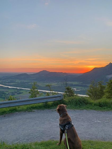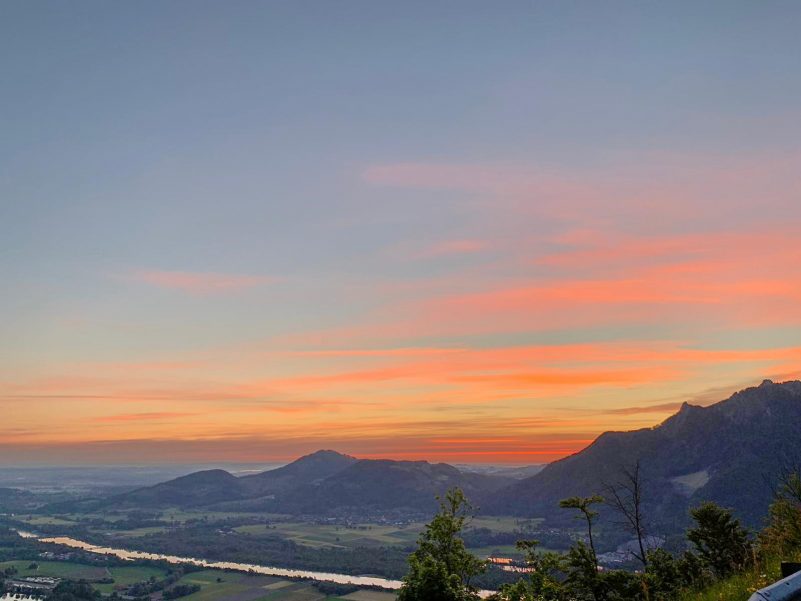 Früh Aufstehen – das hat sich schon immer gelohnt, denn Morgenstund hat Gold im Mund. Wie sich dieses Sprichwort in diesen Tagen wieder bewahrheitet hat, zeigen diese Bilder von Tanja Engelhardt. Bereits um 4 Uhr am Morgen ging die Tour mit Labrador Sammy auf den Petersberg los, um den Sonnenaufgang von Anfang an miterleben zu können. Einfach fantastisch – der Blick ins Inntal im Moment des Auftauchens der Sonne.