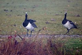 - Vom gegenüberliegenden Ufer schauen Nonnengänse sich das Treiben auf dem Wasser an.