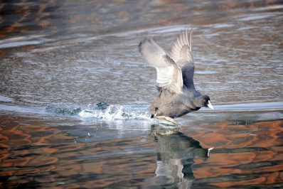 - Auch viele Blässhühner sind da, meistens friedlich. Aber ab und zu kriegt eine einen Anfall und verjagt Konkurrenten.