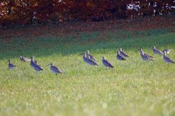 - Auf der Fahrt nach Seebruck fliegt ein großer Schwarm Brachvögel auf die neben der Straße befindlichen Wiesen. Da heißt es im Auto bleiben und von Ferne diese seltenen Vögel beobachten. Sie haben eine hohe Fluchtdistanz und fliegen bei der kleinsten Störung auf und meisten auch davon.