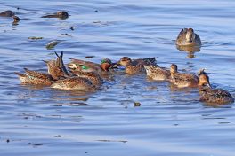 - In der Hirschauer Bucht angekommen bin ich freudig überrascht, eine große Gruppe Krickenten zu sehen. Hier habe ich sie noch nicht gesehen, normalerweise sehe ich sie beim Strandbad Rimsting oder in der Schafwaschener Bucht.