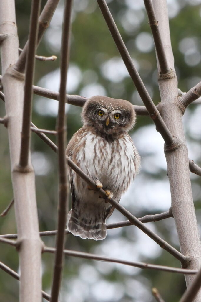 In der Nähe der Kampenwand hat ich heute Glück und hörte auf einmal das hohe Pfeifen der kleinen Eule. Der Sperlingskauz ist unsere kleinste Eule und hat in etwa die Größe eines Spatzens.