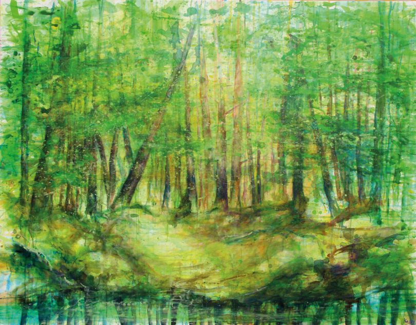 Die großformatige Malerei von Katja Heinroth lässt den Betrachter an Momentaufnahmen und Stimmungen im Wald teilhaben, wobei die Farbgebung je nach Tages- und Jahreszeiten oder besonderen Lichtverhältnissen variiert. In ihren Bildern, expressiv gemalt, verschwimmt gestische Malerei mit naturalistischer Darstellung. Man taucht ein, in Lichtbrechungen, Spiegelungen und ein Flirren der Formen und Farben.