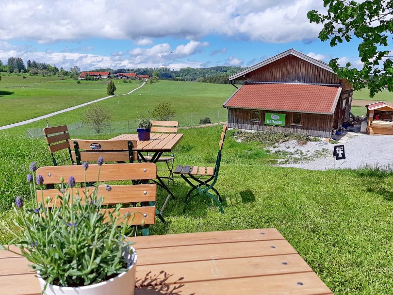 Foto: Das Schmankerlplatzerl unter der Linde des Hofladen Wastlhof lädt zu einer “Natureis-Pause” ein.