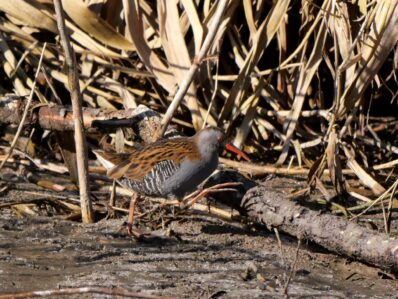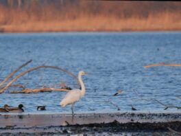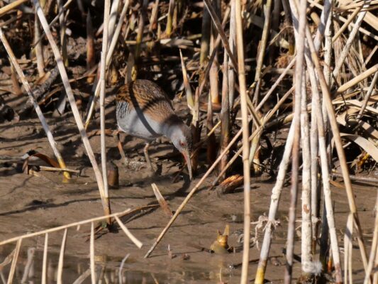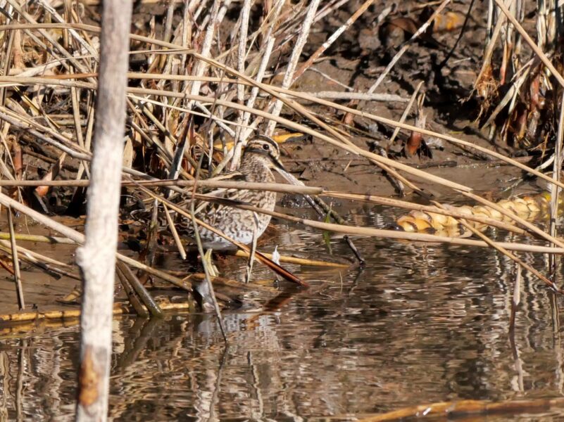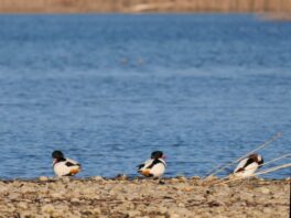 Auch wenn man nur Enten auf dem Wasser sieht, sind es oft doch viele unterschiedliche Arten beim genaueren Hinsehen. So auch die Brandgänse aus dem hohen Norden, welche an der Kiesinsel Rast machen. Auch am Gewässerrand gibt es einiges zu entdecken. Schaut man genauer hin, so ist der schlammige Schilfrand für einige bedrohte Arten ein Festbankett. Die Wasserralle lebt in diesem Habitat ganzjährig, während die vom Aussterben bedrohte Bekassine hauptsächlich ein Wiesenbrüter ist. Aber seine Tarnung ist auch im Schilf überzeugend.