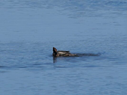 Bei herrlichem Wetter wunderte sich wohl nicht nur das weiße Hermelin, wo den der ganze Schnee ist. Nachdem der Klimadienst Copernicus den wärmsten Januar aller Zeiten festgestellt hat, ist dies hier im Chiemgau überall weithin sichtbar. Auch an den Gewässern sind derzeit weiße Gäste da, die Silberreiher. Dieser regelmäßige Wintergast ergänzt den Graureiher bei der Mäusejagd. Einige Wintergäste wie die Krickenten haben schon deutliche Frühlingsgefühle, man beachte die getunkte weibliche Ente. Der nächste Entenbürzel ist für die häufige Stockente zu bunt und nach dem Auftauchen ist der namensgebende löffelartige Schnabel der Löffelente deutlich sichtbar.