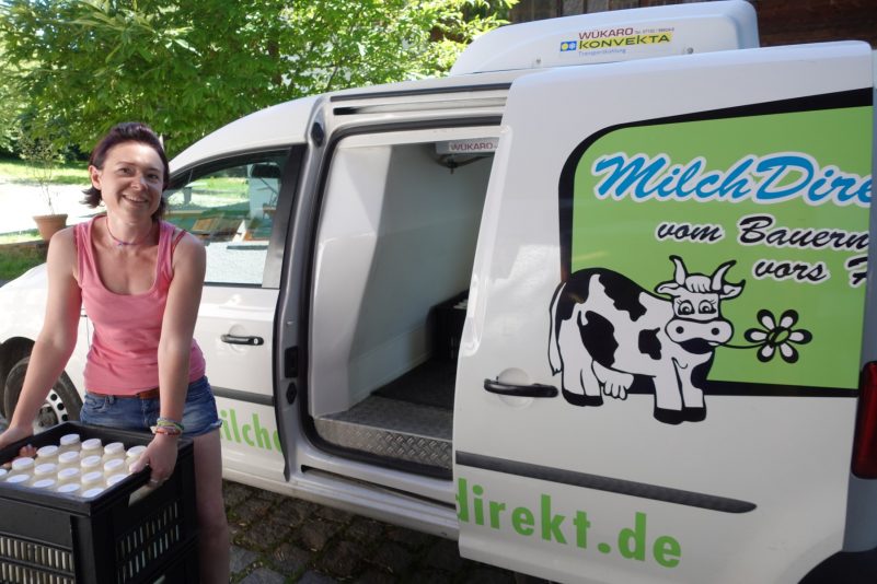 Die Milch wird direkt am Hof pasteurisiert, also für 21 Sekunden auf 75 Grad erhitzt. Auf diese Weise behält die Milch ihren natürlichen Geschmack und auf der Oberfläche bildet sich eine Rahmschicht. Zwei Mal in der Woche wird die Milch mit dem hauseigenen Kühlfahrzeug vor die Haustüre der Kunden gefahren. Das Liefergebiet reicht bis hinüber nach Bruckmühl und hinunter nach Kiefersfelden. Auch in Rosenheim gibt es mittlerweile viele treue Kunden, die sich über „Milch direkt“ freuen.