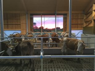 Die Jungtiere des Wendlerhof genießen den Sommer auf der Ackeralm im Geigelsteingebiet. Die daheimgebliebenen Kühe leben in einem großzügig gestalteten Laufstall. Die Tore zur Weide stehen immer offen. Der Boden im Stall ist hufschonend mit weichen Gummimatten ausgepolstert. Es gibt viel Licht und Frischluft und allerlei Annehmlichkeiten, wie eine Dusche, die die „Damen des Hauses“ selbst bedienen können oder eine rotierende Bürste zur Pflege des Fells. Auch zum Melken gehen die Tiere selbstständig. Durch ein Fuß-Band erkennt der Melkroboter, wer da zu ihm kommt und übermittelt dem Landwirt alle wichtigen Daten.
