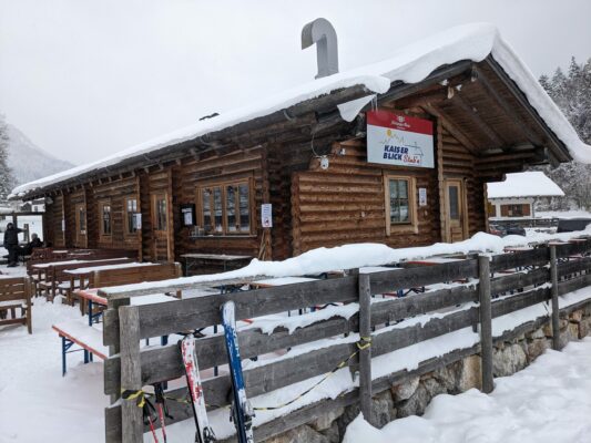 Nach zwei Stunden am Lift habe ich genug, das Weißbier in den Kaiserblick Stub´n lockt. Die Mädels haben richtig Spass und machen noch ein paar Fahrten, bevor auch sie den Einkehrschwung machen und ihren Hunger mit Kaiserschmarrn und Speckknödelsuppe stillen.