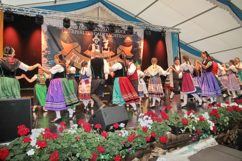 Ein Aktiver von „Enzian“ Bruck hat zum 100sten Geburtstag den „Sulzbachtaler“ kreiert. Von der Neukirchner Blaskapelle wurde der Plattler gespielt und von der Plattlergruppe präsentiert. Die Gaugruppe aus dem Inngau und des Gauverbandes 1 beteiligten sich ebenfalls mit Schuhplattlern. Die Festmädels bedankten sich mit Blumen bei allen maßgeblich am Fest beteiligten Personen, allen voran Jürgen Hofmann. Das nächste Deutsche Trachtenfest wird 2024 in Wangen im Allgäu stattfinden. Zur Festübergabe haben die Brucker einen Hefezopf auf dem Holzschild „Deutsches Trachtenfest 2022 in Bruck“ mit den besten Wünschen für 2024 übergeben.