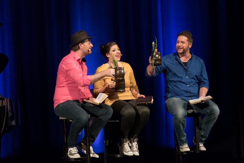 Der Kabarettist, Multiinstrumentalist und Autor Tom Bauer ist bekannt für sein Talent, die bairische Sprache mit viel Witz und in Reimform auf die Bühne zu bringen. Mit Veronika Frank und Sebastian Hagengruber hat er sich zwei Bühnenprofis ins Boot geholt, die mit Witz und Charme in zehn unterschiedliche Rollen schlüpfen und dabei auch noch dreistimmig singen.