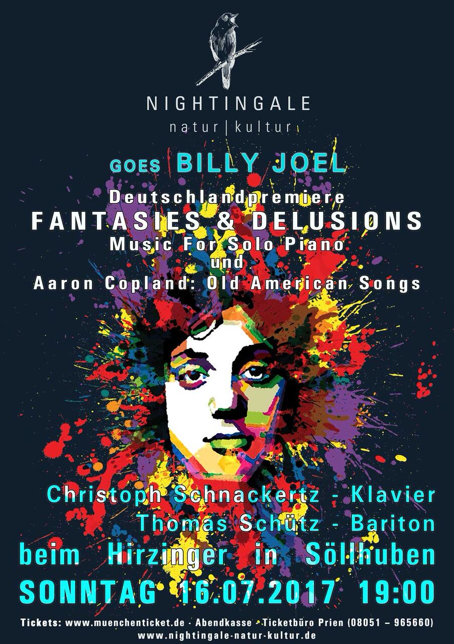 NIGHTINGALE goes Billy Joel feiert am 16. Juli mit der Musikveranstaltung Billy Joel: Fantasies & Delusions op. 1-10, Music for Solo Piano in Söllhuben Deutschland-Premiere.