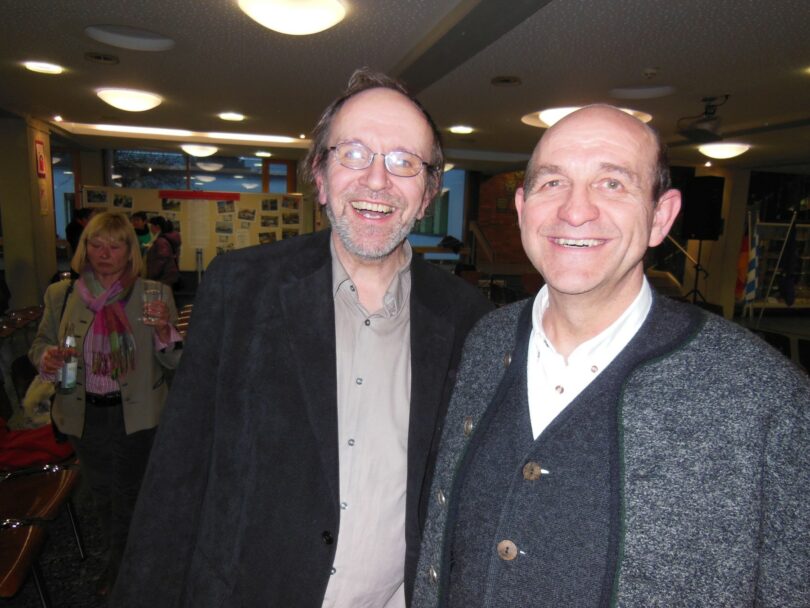 Archiv-Foto: Hötzelsperger – Prof. Rowley und Siegfried Bradl (Bayernbund bei Projekt in Franziska-Hager-Schule in Prien)