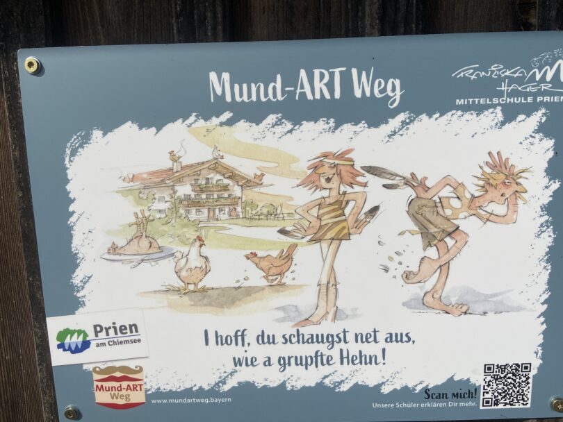 Es griasst Eich aufs Herzlichste – Da Bradl Sigi – Foto: Hötzelsperger (Beispiel vom Mundartweg in Prien-Atzing)