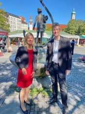 Ein guter Austausch fand mit den Landfrauen, Elternvertretung zusammen mit der Freie Wähler Bundestagskandidatin Andrea Wittmann und Kultusminister Prof. Dr. Michael Piazolo (Freie Wähler) am Viktualienmarkt statt. Vor allem ging es um unsere jungen Generationen, unsere Kinder, die unsere Zukunft sind. Wie wichtig das Näherbringen unserer Landwirtschaft, Lebensmittelherstellung und Ernährung ist, wurde mit der „Schule fürs Leben“ der Landfrauen des BBVs besprochen – dazu sind die entsprechenden finanziellen Förderungen essentiell, um diese Projekte gut leisten und durchführen zu können. Auch besprach Andrea Wittmann in Verbindung einer Vertreterin mehrerer Elterninitiativen für die Landkreise Berchtesgadener Land und Traunstein, Julia Weindl, dass ab 1. Oktober die Maskenpflicht für die Kinder in der Schule endet. Auch, dass die Tests vom Lolly-Test in den Spucktest im baldigen Blickfeld sein müssen, damit unsere Kinder nicht noch mehr Einschränkungen haben. “Unser Kultusminister ist absolut der gleichen Meinung; es liegt nur noch an der Zustimmung des Koalitionspartners” – so Andrea Wittmann.