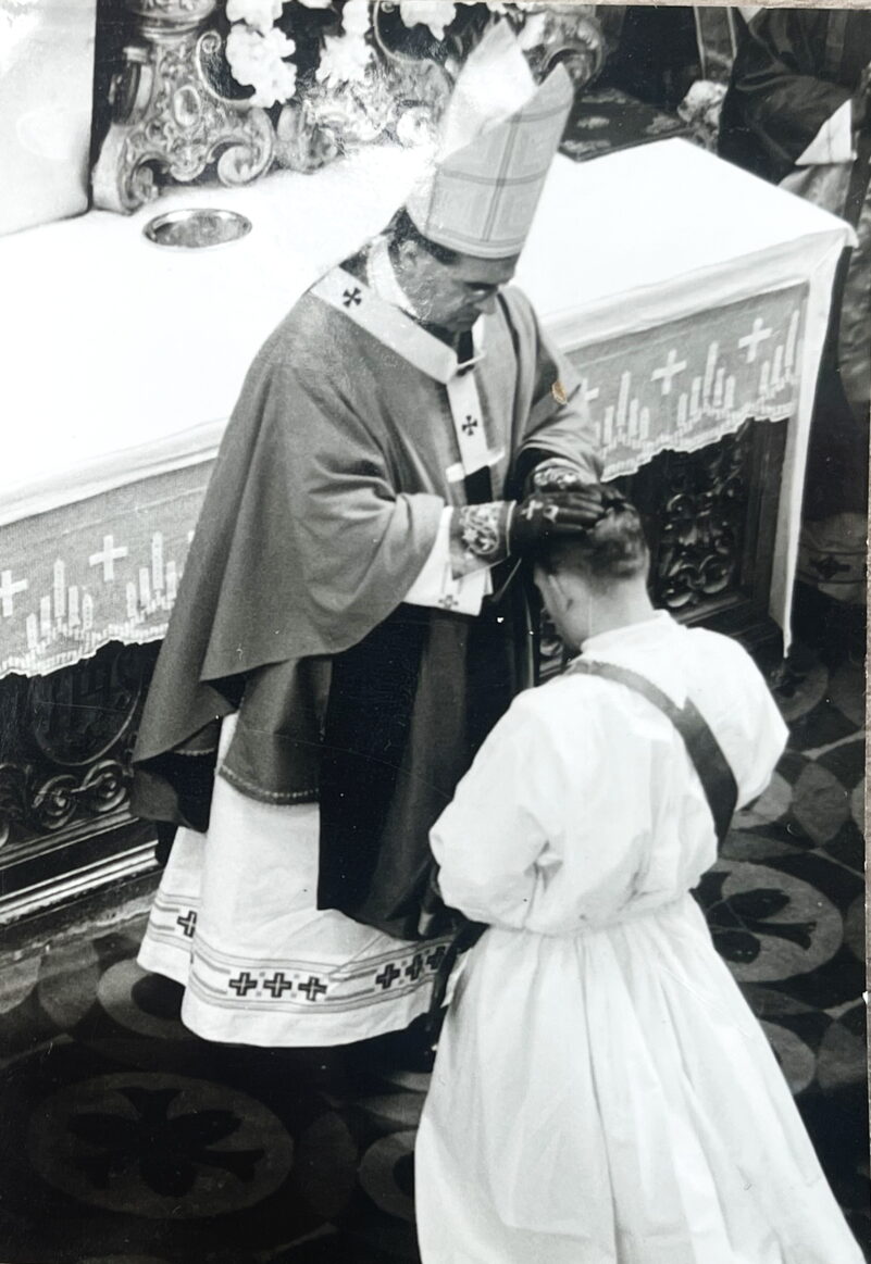 „Beim Wagenhuber in Unterratting in der Gemeinde Amerang waren wir zwölf Geschwister, zu acht dürfen wir noch am irdischen Leben teilhaben“ – so beginnt der im Jahr 1937 geborene Jubilar seine Erzählungen und erinnert dann, dass er das Studienseminar in Traunstein und anschließend das Priesterseminar in Freising besucht hatte. Zum Tag der Priesterweihe durch Handauflegen von Kardinal Julius Döpfner im Dom zu Freising am 29. Juni 1965 weiß Konrad Kronast noch zu ergänzen: „Der Peter- und Paul-Tag war damals ebenso wie der Josefi-Tag am 19. März und der Mariä-Empfängnis-Tag am 8. Dezember ein gesetzlicher Feiertag. Insgesamt waren wir zusammen mit drei Benediktiner-Brüdern 24 Kurskollegen, die die Priesterweihe empfangen durften“. Am 11. Juli war dann Primiztag im Heimatort Amerang. Rund 10.000 Besucher kamen damals zusammen, während es in der Nacht noch heftig geregnet hatte, war dann am Festtag schönes Wetter. Gemeinsam mit Heimatpfarrer Franz Fischer und Kurskollegen Engelbert Wagner wurde die Primz gefeiert, alle Ortsvereine und die gesamte Pfarrgemeine halfen und feierten mit.
