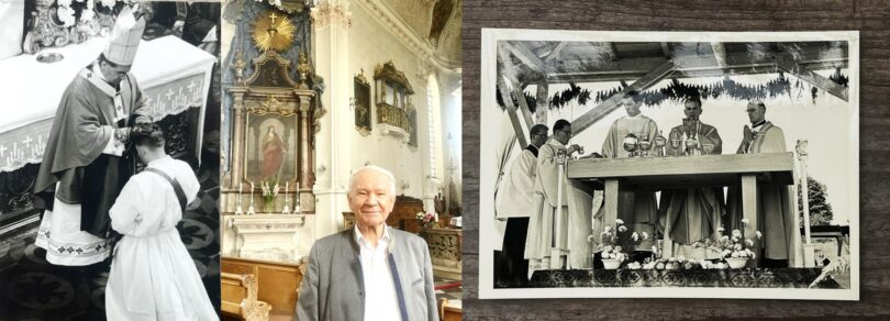 Das Diamantene Priesterjubiläum feiert Konrad Kronast nun am Samstag, 19. Juli um 18 Uhr in Prien. „Vieles hat sich in den 60 Jahren verändert, als 1965 das dreijährige und Zweite Vatikanische Konzil zu Ende ging, herrschte eine große Aufbruchstimmung. Heute gilt es neue Herausforderungen zu meistern und sich notwendigen Anpassungen zu stellen“. Dazu zählt für ihn auch, dass es in der Pfarrgemeinde Prien derzeit wieder ein vermehrtes Gottesdienstangebot für die ganze Woche gibt (Montag, Dienstag, Mittwoch und Freitag um 9.30 Uhr, Donnerstag, 19 Uhr, Samstag, 18 Uhr und Sonntag, 10 Uhr). Bei all den kirchlichen Aufgaben hat Konrad Kronast auch noch Zeit für sich und seine Hobbies, dazu gehören unter anderem Bergwandern und Schafkopfen. Gerne erinnert sich der rüstige Geistliche auch noch an Volkstanz- und Volksmusik-Aktivitäten mit der Jugend (unter anderem mit Siegi Ramstötter und Wastl Fanderl), denn Brauchtums- und Glaubenspflege waren und sind für ihn immer schon zusammenpassende Partner.