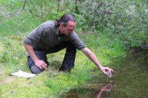 Die Gewässerprobe, die Nationalparkmitarbeiter Martin Pauli im südöstlichen Bereich des Schutzgebietes entnommen hat, enthielt die DNA eines Moorfrosches. (Foto: Annette Nigl/ Nationalpark Bayerischer Wald)