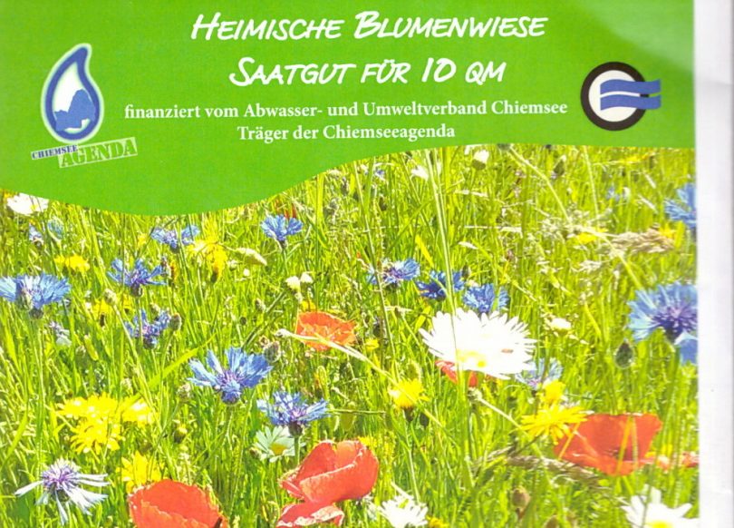 Damit der Frühjahrsstart gelingt, startete der AUV die Aktion „Heimische Blumenwiese“.  Dabei wurde in allen Mitgliedsgemeinden rund um den Chiemsee an die AUV-Gemeinden zahlreiche Saatgutpackungen verteilt. Teil der Aktion ist es auch, die erzielten Wachstums-Ergebnisse und den Weg dahin fotografisch festzuhalten, so dass der Abwasser- und Umweltverband im Herbst und darüber hinaus eine Bilder-Zusammenstellung einer weitreichend blühenden Chiemsee-Region bekommt. Entsprechende Bilder sind an die AUV Umweltbeauftragte Susanne Mühlbacher-Kreuzer per email zu senden, die Adresse lautet: fotoaktion@auv-chiemsee.de. Wie Susanne Mühlbacher-Kreuzer namens des AUV mitteilt, ist der optimale Frühjahrs-Ansaat-Zeitpunkt nach der Mai-Kälte und im Spätsommer sind Ende August/Anfang September noch günstig. In einen humusreichen Boden sind die Samen nach einer eigenen Beschreibung einzubringen. Eine Samen-Tüte reicht für etwa 10 Quadratmeter. Es wird darauf hingewiesen, dass die angesäte Fläche die ersten drei Wochen feucht gehalten werden soll und dass auch Schnecken die Wildblumenkeimlinge mögen. Die besten Erfolge erzielt man auf sonnigen Standorten.