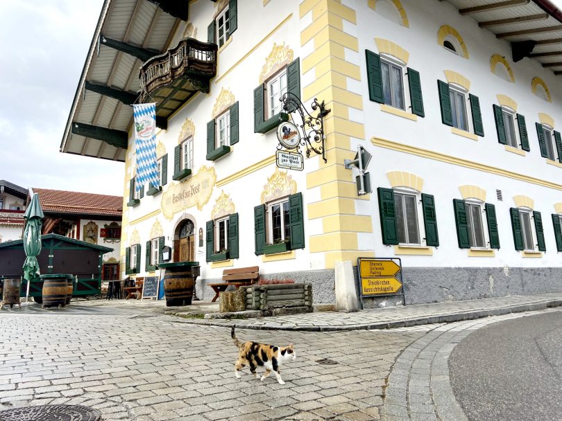 Sie ist dreifarbig und hat einen besonderen Namen: die Dorfkatze vom Samerberg. Zu Hause ist sie in mehreren Häusern, gerne auch im Rathaus oder Wirtshaus und überall ist sie gerne gesehen und bekommt ihre kleinen Mahlzeiten. Unsere Bilder zeigen die Samerberger Dorfkatze bei einem Erkundungsgang über den Dorfplatz von Törwang und vorbei am Gasthof “Zur Post”.