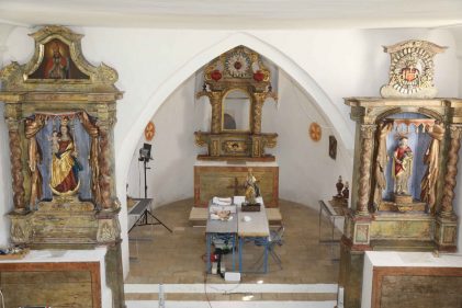 Seit 2016 wird in der Filialkirche Ebering fleißig gearbeitet. Eines der ältesten Gebäude der Gegend mit einer der ältesten Emporen des gesamten süddeutschen Raumes wird aufwändig renoviert und restauriert und damit der Nachwelt erhalten. Die 700-jährige Geschichte des Gotteshauses kann man am Gebäude und an der Innenausstattung ablesen. Dieses Juwel im Erdinger Holzland schlummerte lange im Dornröschenschlaf. Erst mit der Renovierung rückte die Bedeutung dieses Bauwerkes wieder in den Focus der Experten. Das Ordinariat, das Landesamt für Denkmalpflege, die Kirchengemeinde und auch die politische Gemeinde Steinkirchen sind ganz besonders stolz auf dieses Kleinod. Zum „Tag des offenen Denkmales“ im vergangenen Herbst sollte nun das Gotteshaus für die Bevölkerung geöffnet werden. Es war vorgesehen, dass die Restauratoren vor Ort Auskunft geben über die einzelnen Schritte der aufwändigen Renovierung. Doch leider hat auch hier die Corona-Pandemie einen Strich durch die Rechnung gemacht. Absolut sicher können sich Interessierte Bürger über die Bedeutung der Kirche sowie die laufenden Arbeiten nun im Internet informieren – eine Videosequenz ist auf YouTube unter https://youtu.be/bC1PKHuanLk zu finden. Aber auch auf der Internetseite des Pfarrverbandes Holzland findet sich unter der Pfarrei Steinkirchen ein Link des Videos. Soweit es Corona zulässt, sollen wieder Gottesdienste, Lesungen und Konzerte abgehalten werden. Aber auch für Besichtigungen wird die Kirche nach Absprache offen sein. Es gilt nun, dieses Juwel weiter zu pflegen und langfristig zu erhalten. Zur Finanzierung ist die Pfarrei auf großzügige Spenden angewiesen. Pfarrer Jacek Jamiolkowski und die Kirchenverwaltung bitten deshalb um finanzielle Unterstützung auf das Konto Filialkirche Ebering, IBAN: DE84 7016 9566 0000 2141 08.