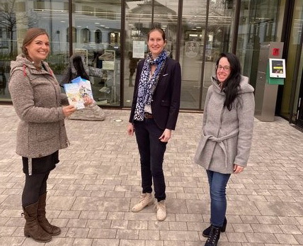 Bericht und Foto: Gemeinde Bernau – Die erste Bürgermeisterin Irene Biebl-Daiber freut sich zusammen mit Natalie Stangl über die Bücherspende für die Bernauer Bücherei.