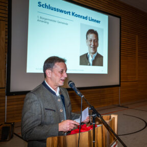 Redaktionsleiter Rupert Rußwurm präsentiert in der Ameranger Gemeindehalle das neue Heimatbuch
