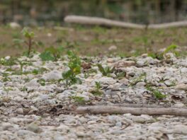 Die hässlichen Entlein folgen dem stolzen Schwan, während die letzten Graugansküken von beiden Eltern eskortiert werden. Sucht man die Kiesinsel ab, so erkennt man immer wieder Vögel. Etwa eine juvenile Bachstelze oder ein sich ausruhender Kiebitz. Und wenn man ganz genau hinschaut, erkennt man neben dem Treibholz auch zwei kleine Dunenjunge. Frech sausen die Flussregenpfeifer über die Kiesinsel und suchen immer wieder die Wärme der Altvögel auf, welche wachsam stets in der Nähe sind.