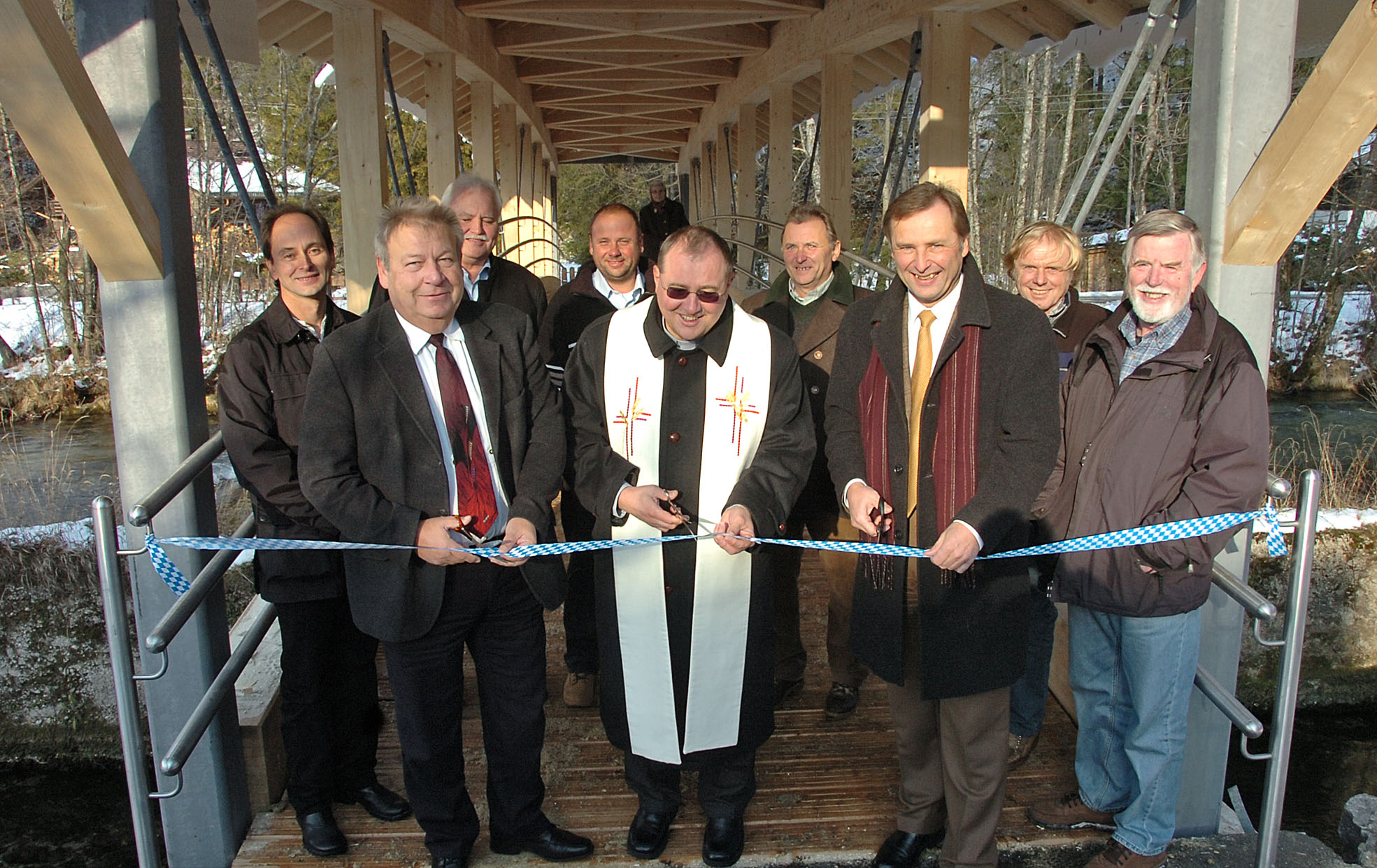 steg bei hammer frei hier beim durchschneiden des bandes georg raum amt für ländl entwicklung, pfarrer josef spitzhirn und bgm josef lechner