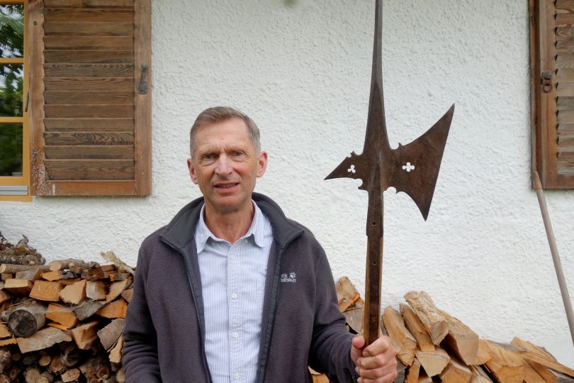 Frasdorf (hö) – Wie der Frasdorfer Ortsheimatpfleger Rupert Wörndl berichtet, befindet sich in manchen Frasdorfer Bauernhäusern noch irgendwo eine alte Hellebarde. Kaum einer weiß heute, was es damit für eine Bewandnis hat. Die Hellebarde war eine ziemlich grausame Waffe aus der Zeit vor der Erfindung von Schusswaffen. Sie wurde vom Fußvolk hauptsächlich im 14. und 15. Jahrhundert verwendet. Sie ist eine Mischform von Hieb- und Stichwaffe. Der Haken diente dazu, einen Reiter vom Pferd zu reissen. Heute kennt man sie noch als Paradewaffe, wie sie etwa die Schweizer Garde im Vatikan benutzt.