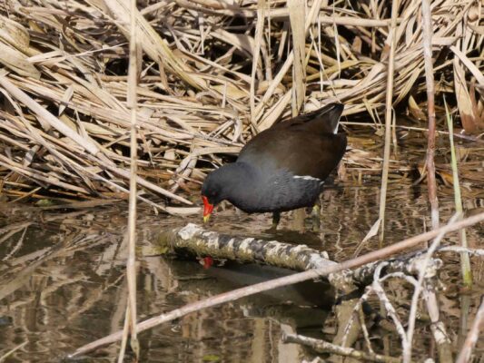 Bei herrlichen Wetter ging’s mit dem Fahrrad zur Prienmündung. Schon im ersten Uferbereich konnte ich ein Teichhuhn in der aufgehenden Sonne beobachten. In den Bäumen war ein seltener Kleinspecht zu entdecken. Diese kleinste Spechtart Deutschlands brütet an alten Weichholzauen.