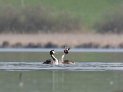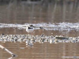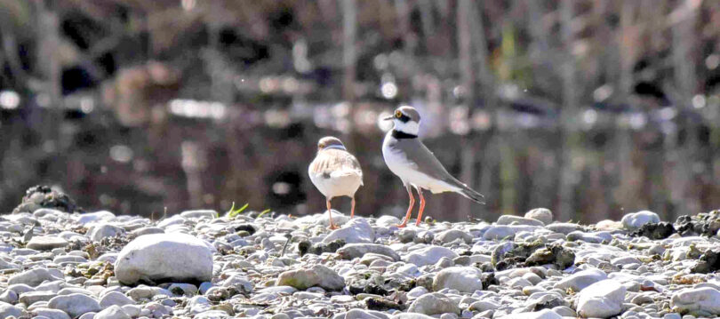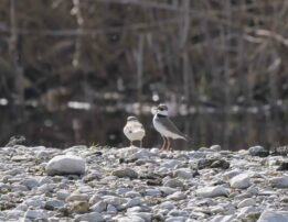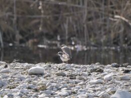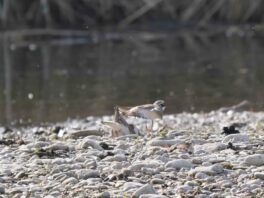 Auf der Kiesinsel war er ein seltener Rotschenkel und das erste Flussregenpfeiferpaar da und ich hatte das Glück, die komplette Balz dieses Paares zu beobachten. Los ging es, dass das Männchen ein kleine Nestmulde baute. Anschließend zeigte das Männchen dem Weibchen diese Nestmulde, dann folgt ein kurzer Balztanz, bevor es zur Kopulation kam. Es ist sehr schön, dass diese seltene Kiesbrüterart wieder da ist.