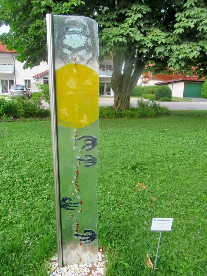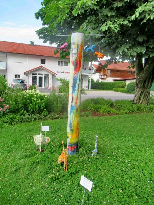 Der Bernauer Skulpturenweg findet heuer zum siebten Male statt, dieser ist nach Aussage der Künstlerin Corinna Brandl alle Jahre größer und interessanter geworden. Auf die Frage, ob sie ein Lieblingsstück hat, sagte die Organisatorin: „All das, was zu entdecken ist, sprüht vor Ideen, Farben und Freude, besonders einfallsreich finde ich die in einem Baum hängenden Tassen samt Schrank mit der deutlichen Frage, ob hier noch alle Tassen im Schrank sind, sowie das von grüner Natur umrahmte Werk `Kinderseele`“. Corinna Brandl erläuterte mit ihrer Kunstkreis-Kollegin Dorothea Tielemann den Besuchern der Vernissage das in der Natur begehbare Kunstwerk. Die Eröffnung nahm vorher Zweiter Bürgermeister Gerhard Jell vor. Er und seine Gemeinderätin und Kulturreferentin Michaela Leidel hatten allen guten Grund dem KunstKreis, den Gast-Künstlern und vielen Helfern zu danken. Michaela Leidel, die sich in der Gemeinde Bernau u.a. um Termine und Koordinierung zu Kultur- und Veranstaltungsthemen kümmert, bedankte sich ganz besonders beim gemeindlichen Bauhof, der sich stark bei der Aufstellung der Kunstwerke einbrachte. Ein weiterer Dank galt Rita Fitzner von der Gemeindeverwaltung, sie sorgte für die Vernissage-Getränke.