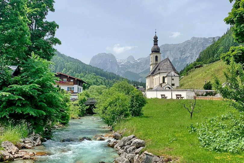 Ein immer wieder gerne genutztes Fotomotiv ist die Kirche St. Sebastian im Bergsteigerdorf Ramsau im Berchtesgadener Land – wie diese aktuelle Aufnahme zeigt, präsentieren sich Kirche und Landschaft gleichsam einem Gemälde.