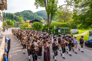 Schon am frühen Morgen marschieren die Musikkapellen Neubeuern, Rohrdorf und Samerberg durch Nußdorf zum Festzelt.