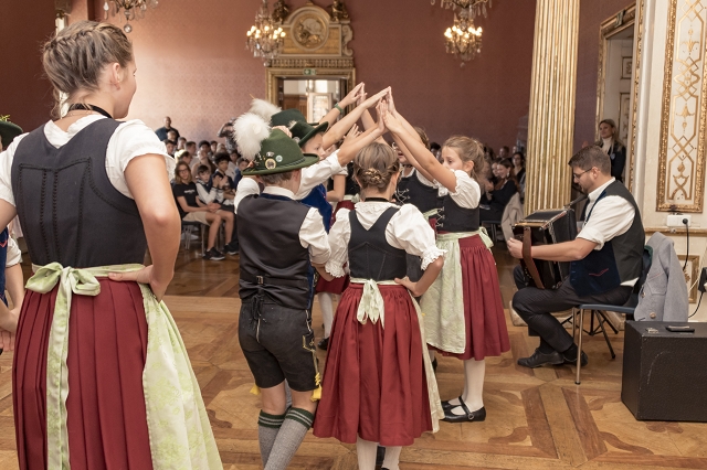 Am Mittwoch, den 1. Oktober bebte am Nachmittag der Bühnenboden des Festsaals von Schloss Neubeuern. Bereits zum zweiten Mal wurde unserer Schule die Ehre einer exklusiven Aufführung der Jugendgruppe des Volkstrachtenverein Edelweiß Neubeuern zuteil.