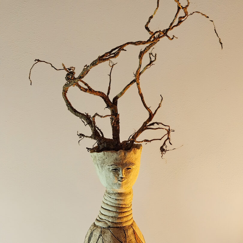 Auch die Kunst ist ein Raum der Freiheit, ein Ort, der in unbekannte Welten entführen kann. In den Skulpturen und Bildern von Gabi Hanner spiegelt sich diese Freiheit wider. Ihre Figuren vorwiegend aus Ton gearbeitet, sind abstrahiert, vereinfacht, archaisch. Mit Rissen, Aufbrüchen und Öffnungen vermitteln sie den Eindruck des Unvollkommenen, genauso wie die Wildnis der Natur. Ihre Bilder spiegeln die erlebte und gefühlte Wildnis wider, verdichtet in Farben und Formen. Gabi Hanners Werke zeigen eine Symbiose von Kunst, Mensch und Natur und laden dazu ein, die Wildnis mit anderen Augen zu sehen – nicht als Chaos, sondern als die „Poesie“ der ungebändigten, kreativen Natur.