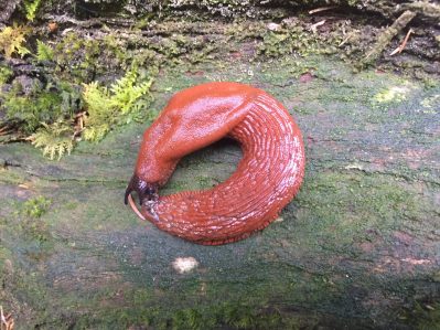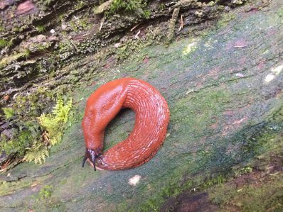 Die gezeigte Schnecke ist Die Rote Wegschnecke (Arion rufus), auch Große Wegschnecke oder Große Rote Wegschnecke genannt, ist eine 12 bis 15 Zentimeter lange Nacktschnecke, die in Mittel- und Westeuropa weit verbreitet ist. Sie gehört zur Familie der Wegschnecken (Arionidae) aus der Unterordnung der Landlungenschnecken (Stylommatophora).