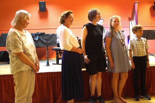 Einen musikalischen Rückblick erhielt das Publikum mit „La Petite Boutique“, einem Musette-Walzer mit reichen Verzierungen, der die Besucher an das Ufer der Seine führte. Gegenseitig spielten sich die Musiker die Melodien zu, die Harfenistin untermalte mit Arpeggien. Jazzig wurde es beim „Blues in B“ und bei „Petite Fleur“, sowie beim „Wild Cat Blues“, immer wieder mit der Gelegenheit für den Kontrabassisten, seine Basslinie zu einem wunderbaren Solo auszubauen.