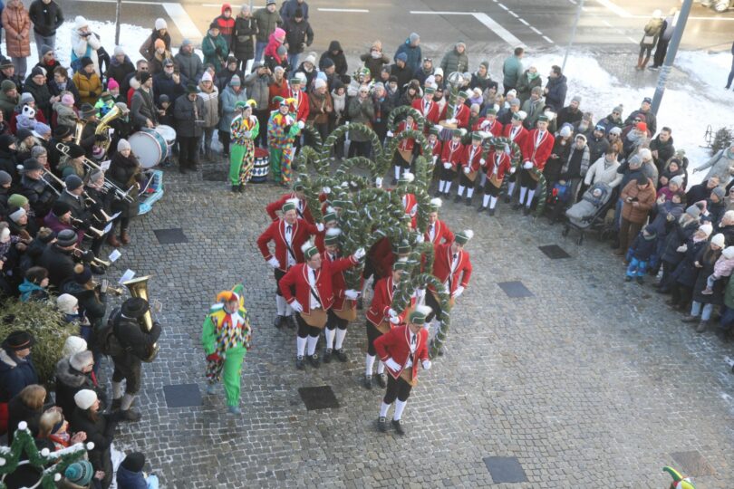 Im Jahr 2026 tanzt die Taufkirchener Schäfflergruppe an den Wochenenden bis einschließlich Faschingsdienstag. Eine besondere Attraktion, die es nur alle sieben Jahre zu sehen gibt, ist der Figurentanz der örtlichen Schäffler. Beim Auftaktauftritt passte der Titel der Schäfflermelodie „Aber heid is koid“ sprichwörtlich: Beim ersten Tanz der rund 25 Tänzer am Sonntag herrschte zwar trockenes, aber kaltes Winterwetter. Nach dem Gedenkgottesdienst für die verstorbenen Mitglieder zeigten die „Rotjacken“ ihren ersten Tanz auf dem Rathausvorplatz in der Ortsmitte. Unter den Zuschauern befanden sich Bürgermeister Stefan Haberl sowie zahlreiche Ehrengäste. Trotz der Kälte kamen die Besucher in großer Zahl, um den ersten Auftritt der Schäffler zu sehen. Die Tänzer präsentierten sich mit sichtlicher Freude über das Ende der siebenjährigen Tanzpause.